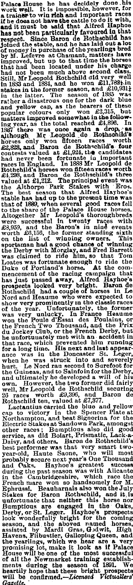 The article actually provides a lot of information about the stables - not only does it detail that Sir Anthony was the owner of the stables and Joseph Hayhoe was his training groom, but also that James Bartholomew was the head lad and Frank Chapman was a stablelad here.