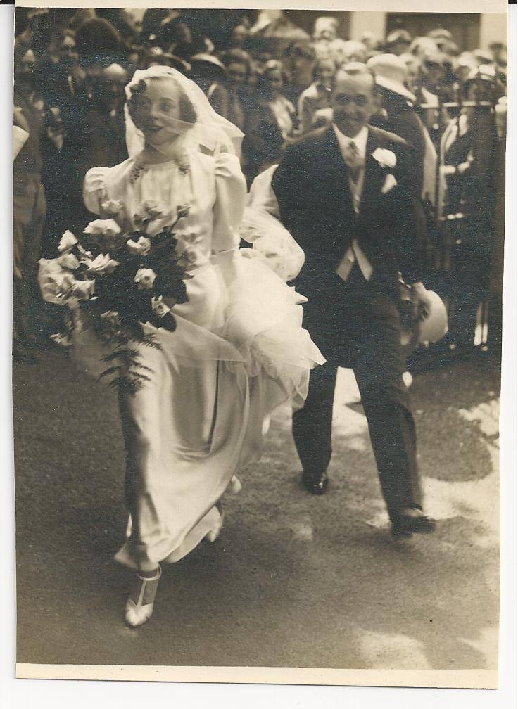 Henri Albert and Angela (Rusty) Jelliss arriving at All Saints Church, 1938