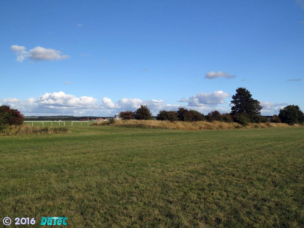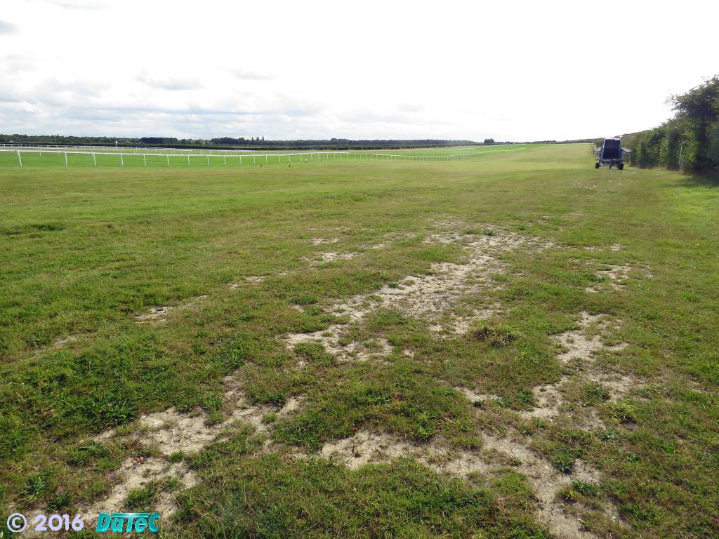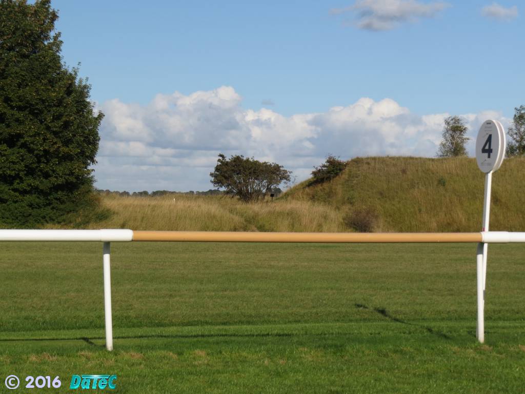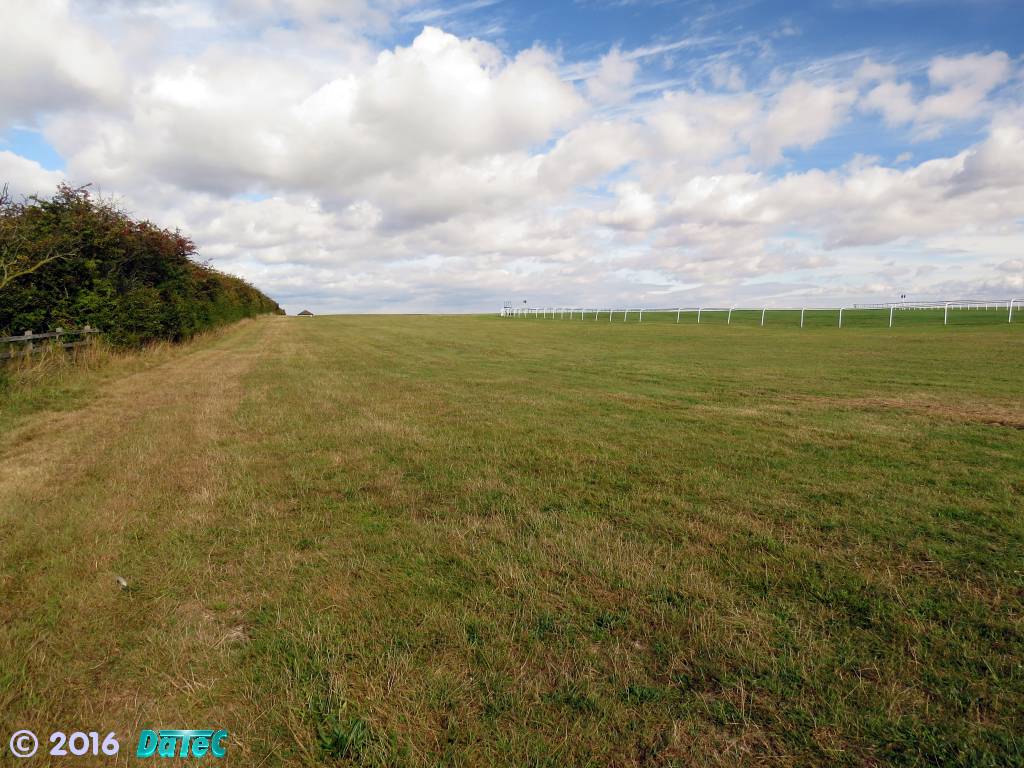 ![]() Lowered section of the Dyke from the end nearest the 4 furlong marker, looking north west towards the King's / Stable Gap, which is adjacent to the 5 furlong marker on the July Course |