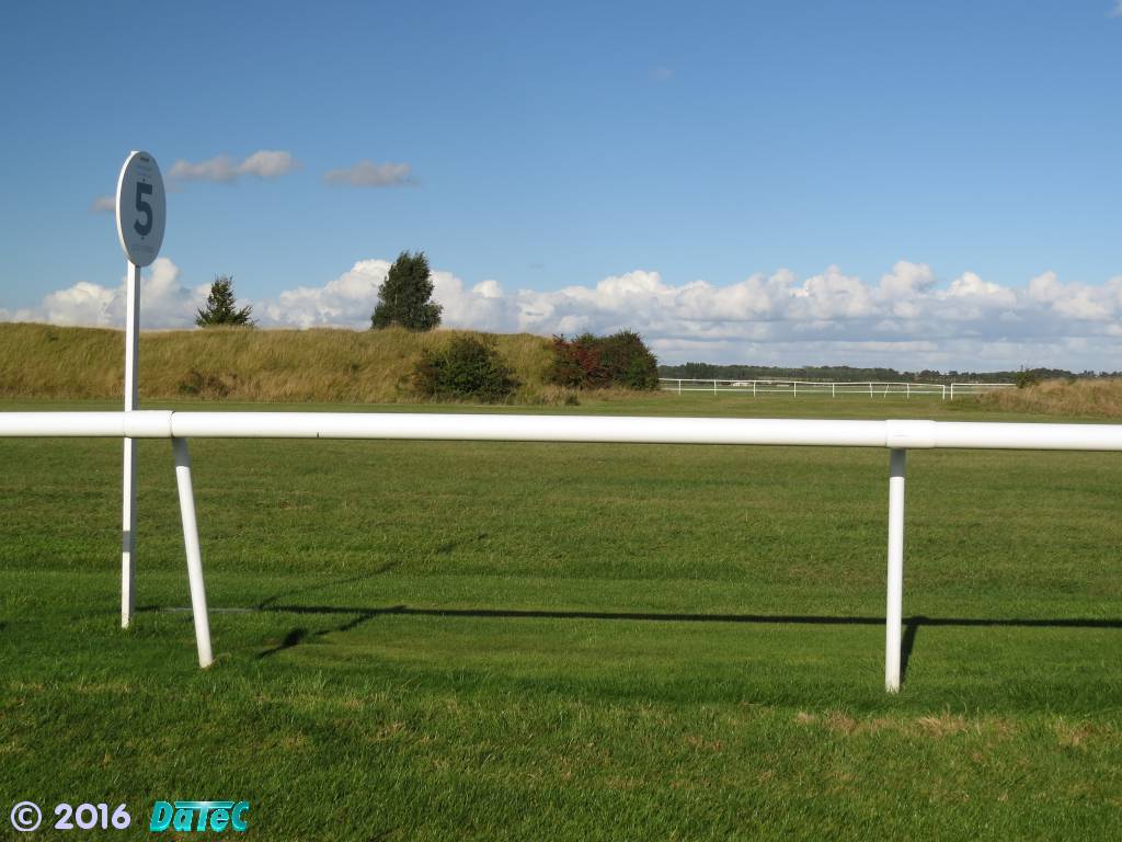 ![]() 5 Furlong Marker on the July Course looking through the King's / Stable Gap - the lowered section is on the right |