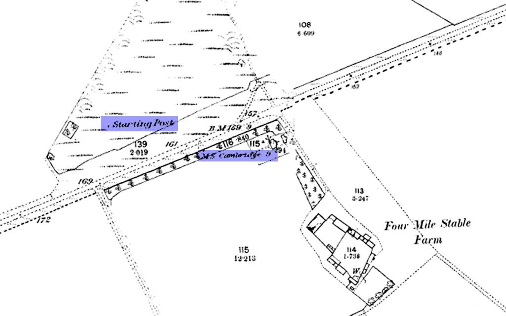 four miles from the finishing post, which at this time was in front of the Cambridgeshire