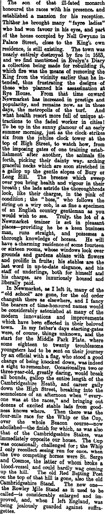 from the start of the racecourse at Newmarket. But Newmarket had