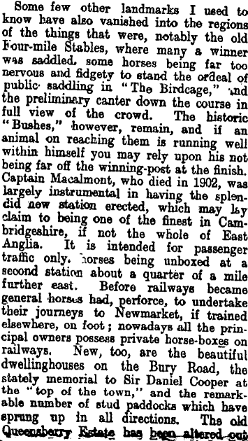 article describes how Newmarket's racecourses were changing rapidly