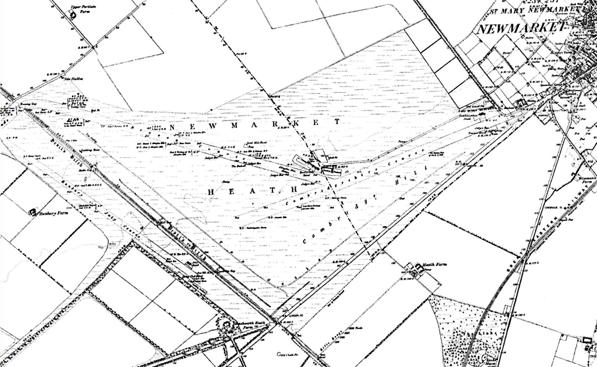 The swathe of land on the other side of the London / Cambridge Road that is now the Newmarket Links Golf Club was at one time the Jockey Club owned Links Farm, steeplechase and polo ground.