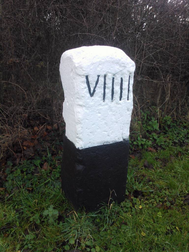 Further along the old Cambridge Road you'll come to the third milestone set into the ground at the side of the road.