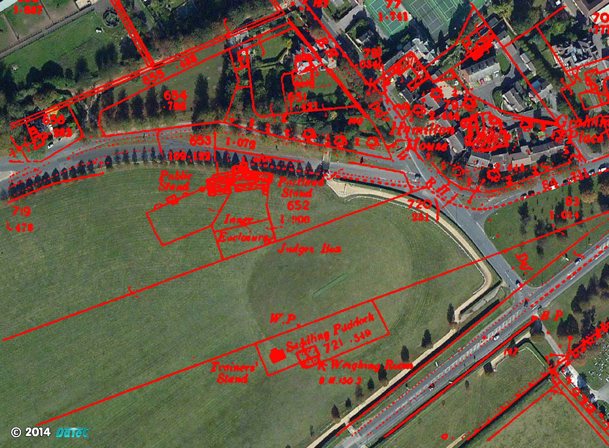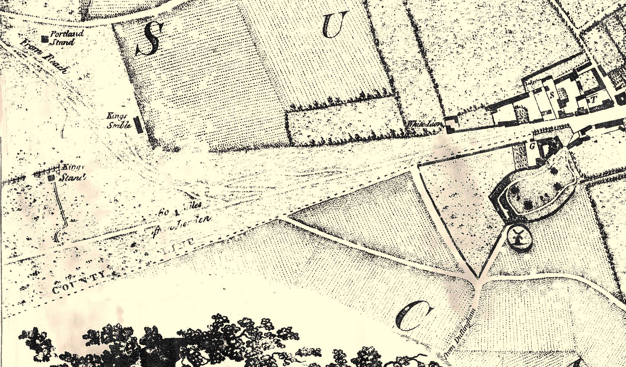 This then shows quite clearly the position of the Portland and Public stands located against the side of the Rowley Mile private road.