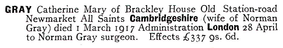 - Norman Gray's first wife; Catherine Mary (nee Ogden), died in 1917 while
