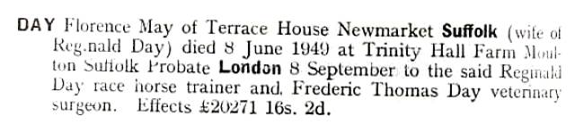 He died on 15th January 1972 and is buried with Florence May in Newmarket