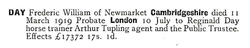 Frederick William Day died on 11th March 1919, leaving his estate to his