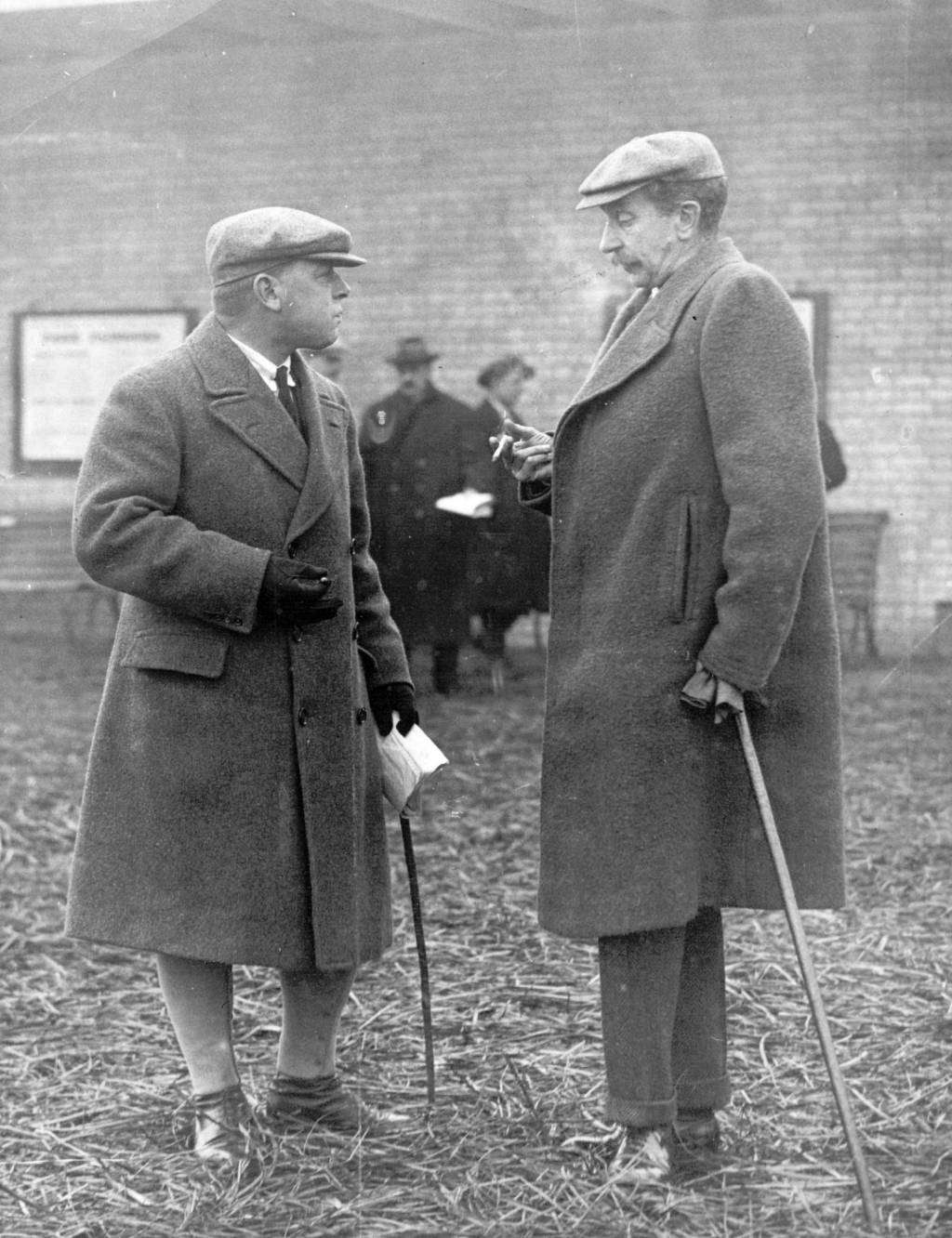 ![]() This photograph of Reg Day and the Earl of Sefton is thought to date from around 1920. It is labelled on the reverse: 'Bloodstock Sales At Newmarket. 229920. R. Day, trainer chatting to Earl of Sefton |