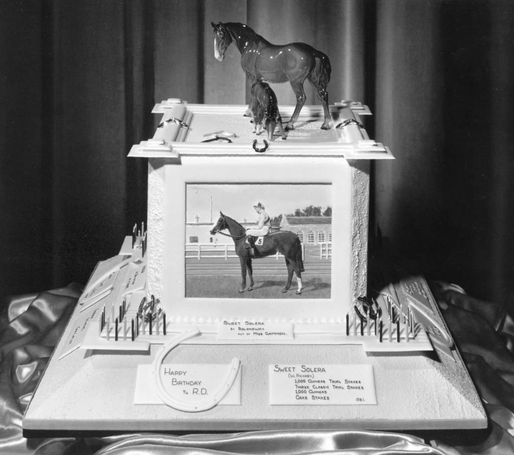 ![]() This photograph is of Reg Day's 'unusual' 80th birthday cake, and was taken by John Slater of Newmarket in 1963 |