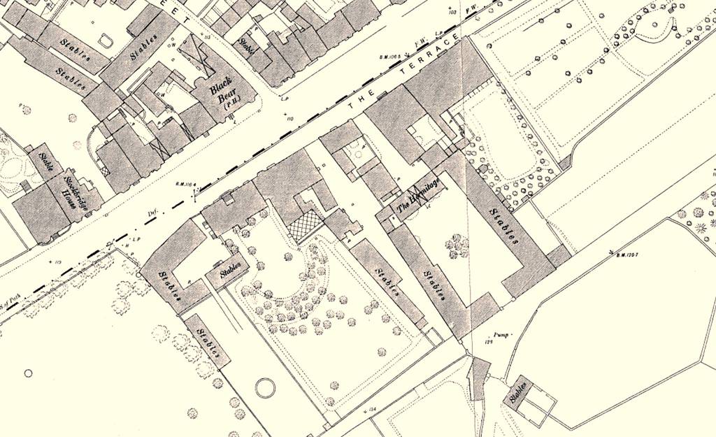(It's the house opposite the Black Bear - note that the frontage at this time only had the one bay window)