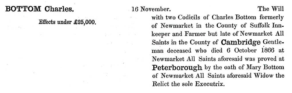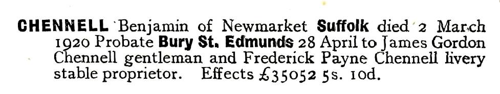 Benjamin died in Newmarket on 2nd March 1920 and his probate was heard at Bury St Edmunds on 28th April 1920.