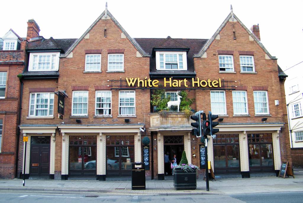 Following its re-build the White Hart has undergone further changes, the front door on the left is no longer used as the main entrance into the hotel and full glass windows have been added to the street frontage.