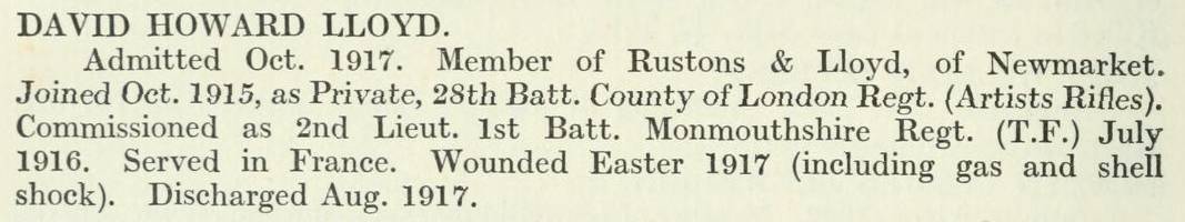 He joined the solicitors in October 1917, having been discharged from the army due to wounding earlier that same year.