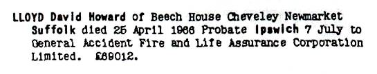 David died on 25th April 1966 at Beech House in Cheveley.