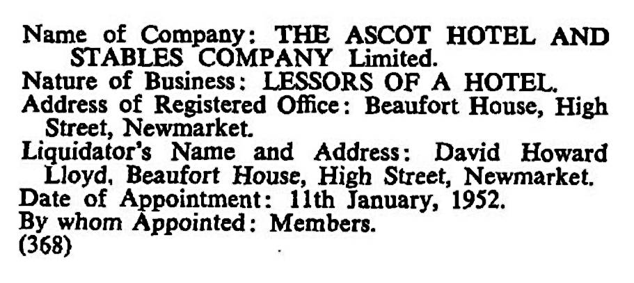 - The Ascot Hotel and Stables Company, a leasing company set up by