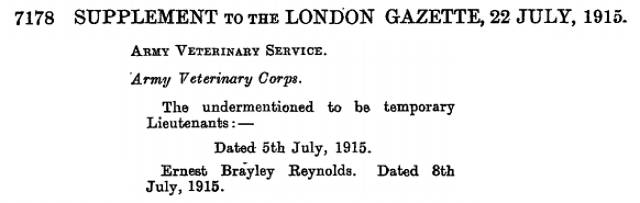 1879. The son of James Henry Reynolds (another veterinary surgeon)
