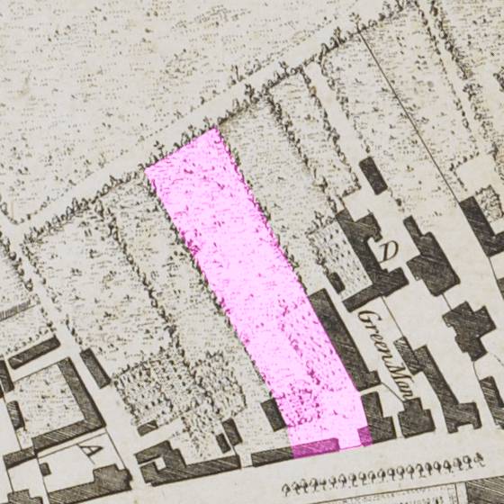 What's actually more relevant here is that if we refer all the way back to the Newmarket historian Peter May's investigation of the history of Newmarket over 500 years ago, both these houses are located on the same burgage plot - an historic segregation of property that produces almost identical width plots of land that front onto a main road. Referring to Peter's map of 1472 this site was plot No.3 and it extended all the way back to the present-day Fitzroy Street (details of the occupiers at that time are shown in the history list above).