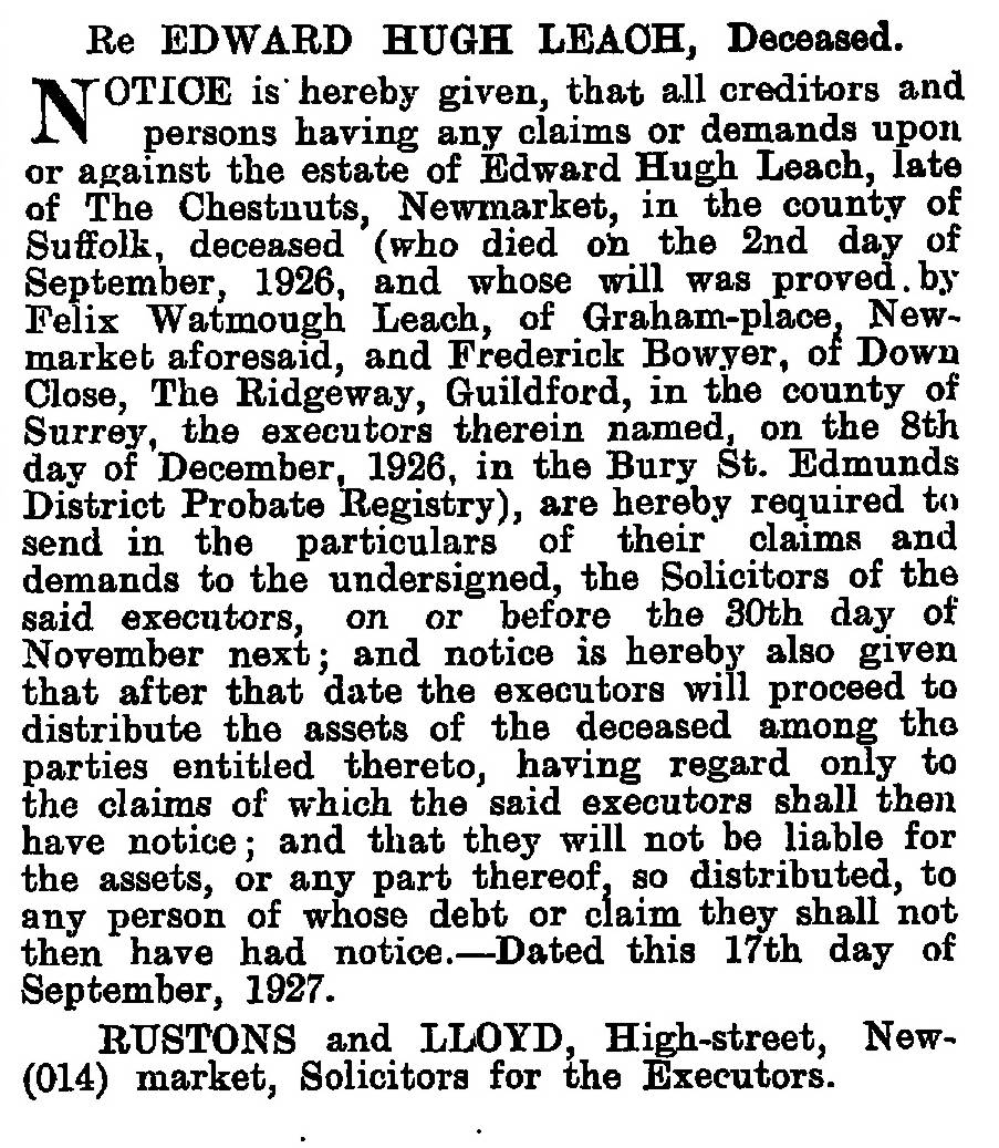 The Chestnuts: Leach E.H. - Newmarket Street Directory |