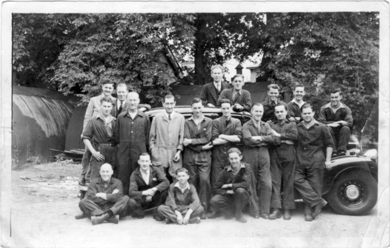 Following this Joe Moore (who worked at the garage and donated the photos below) lived for some time in an upper storey flat in the house, but during WWII he had to move out; as the house was seconded by the army to be used for billeting troops. Following the war two remaining Nissen huts can be seen in the 1947 photo further down below. The house was later used as the spares department for the garage.