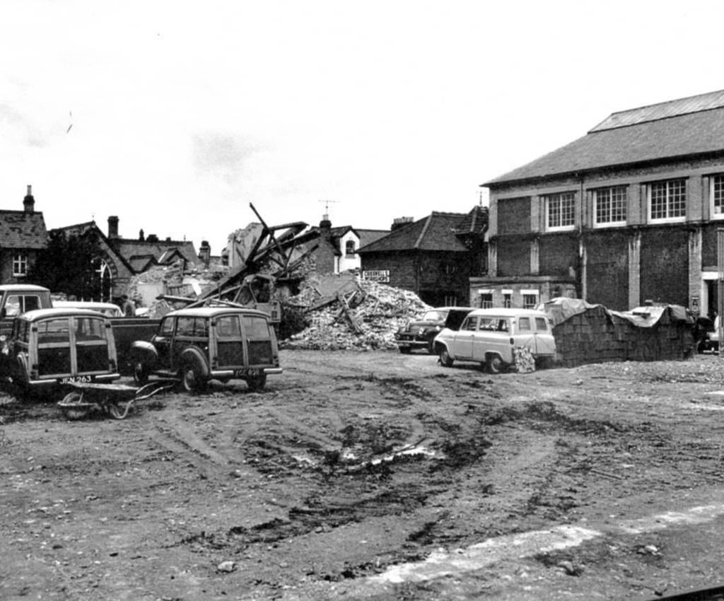 re-built in 1968 as a new workshop and petrol pumps at the rear of the