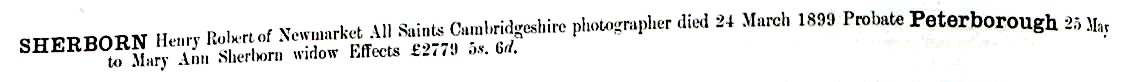 Henry died on 24th March 1899 in Newmarket, leaving his estate to his widow Mary Ann:-