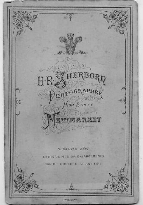 says 'R H SHERBORN PHOTO NEWMARKET' - i.e. the letters H & R