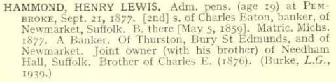 - Both Charles Edward and Henry Lewis Hammond went to Cambridge