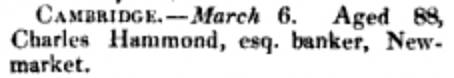 - Charles Hammond senior died in Newmarket on 6th March 1837:-