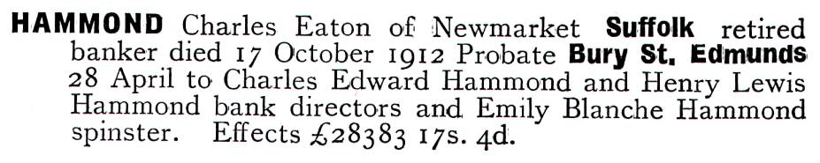 Newmarket - her son Charles Eaton Hammond was the sole executor.