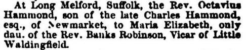On 1st July 1847 he married Emily Law Plumpton-Wilson at Melton Mowbray in Leicestershire and by the 1861 census he was living at Bank House, High Street, Newmarket.