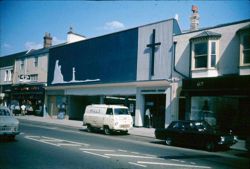 ![]() Newly built Congregational Church in 1968 - showing the original International Stores on the left the empty supermarket has a sign on its window saying that the new International Stores is to open soon Many thanks to the Newmarket Local History Society for this photo |