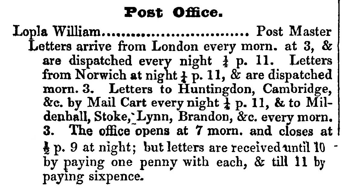 This looks like it could have been the first post office in Newmarket and pre-dates that on the other side of the road at No.122 High Street, the building which was demolished by the bomb on February 18th 1941.
