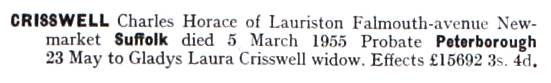 His younger brother Samuel, born 1847 in Fenstanton, also moved into Newmarket and opened a Grocer Store 'Crisswell's Supply Stores' in Wellington Street.