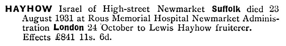 Israel died soon after on 23rd August 1931 and left his business to his son Lewis.
