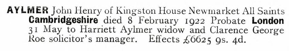 lived-on in the name of the company of solicitors. His probate (shown below), shows that he'd still been living at Kingston House.