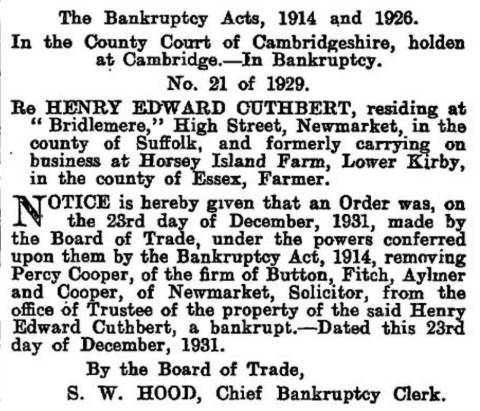 Henry Edward Cuthbert lived in Fordham Road ... Bridlemere