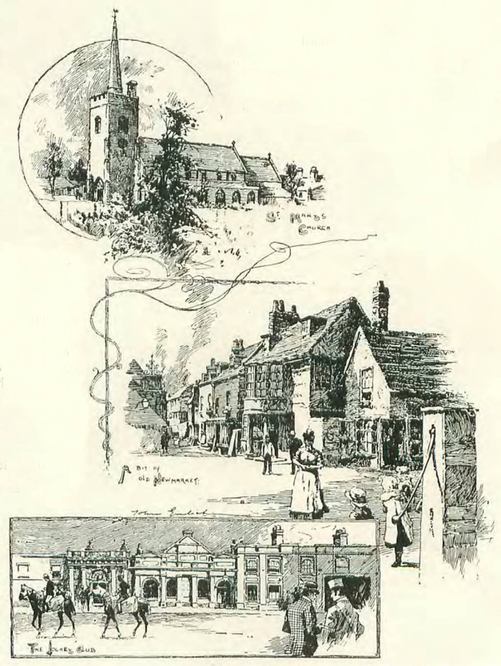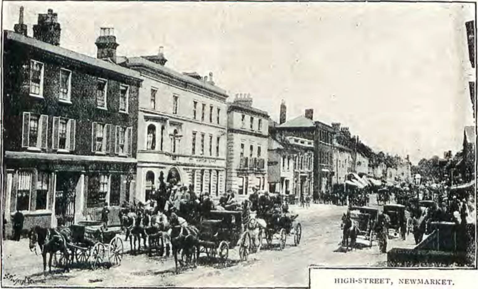 ![]() In and about Newmarket 1891 St Mary's church at the top The Market Place and Bushel Inn in the midlle The Jockey Club at the bottom |