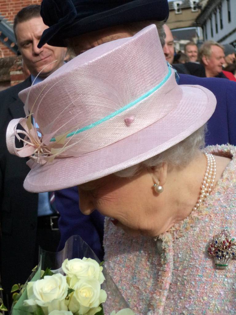 ![]() The Queen being presented with white roses Many thanks to Chrissie Rippington for this photo |
