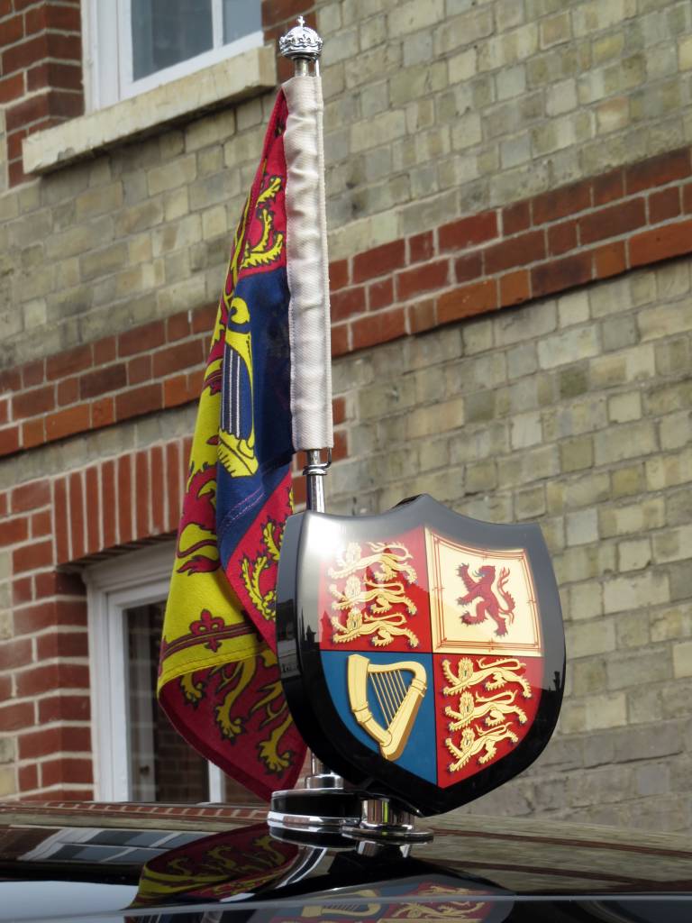 ![]() The official blazon of the Royal Arms on the Queen's car |