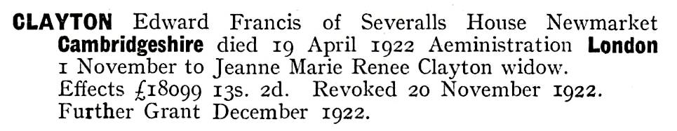 in 1919, just after WWI, but it was only a few years later that Edward died there on 19th April 1922.