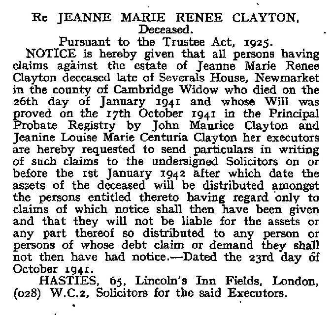 Severals House - Clayton, Mrs Jeanne M. - Nkt.240 - Newmarket Directory |