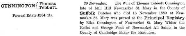 Cunnington Thomas Tebbutt, butcher, Wellington Street - White's Directory |